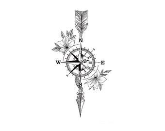 Tattoo Design And Stencil Clock And Rose Tattoo Design Etsy